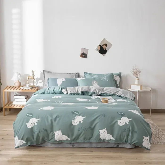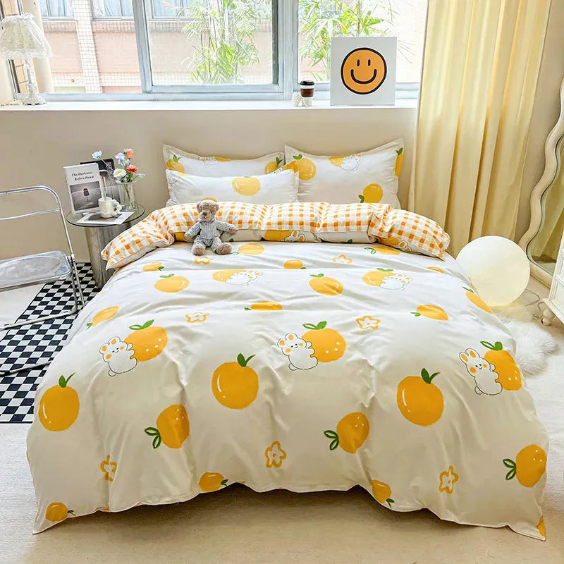 Floral Print Brushed Home Bedding Set Simple Fresh Comfortable Duvet Cover Set with Sheet Comforter Covers Pillowcases Bed Linen